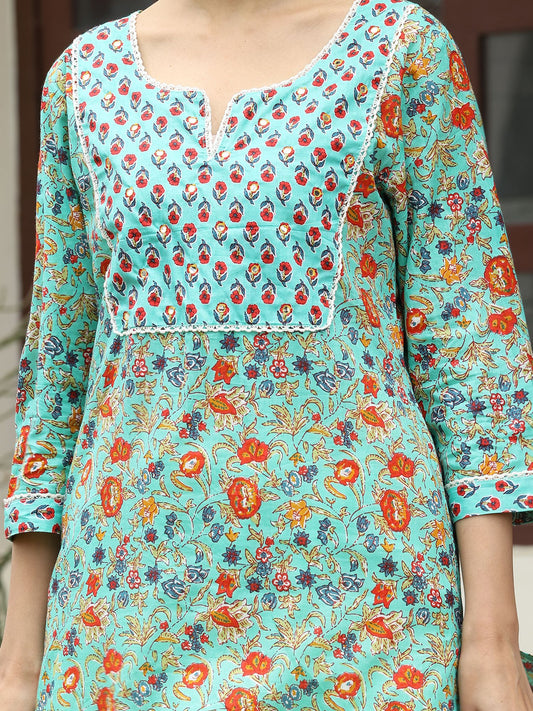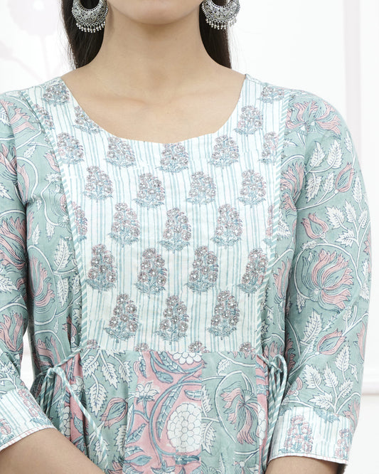Serene Light Blue Hand Block Bagru Printed Cotton Kurta Set