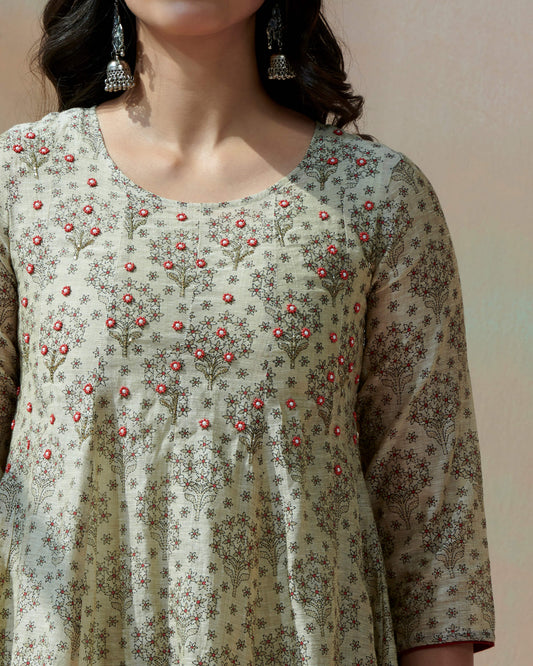 Summer Pastel Gold Print Kurta Set with Afghani Pant