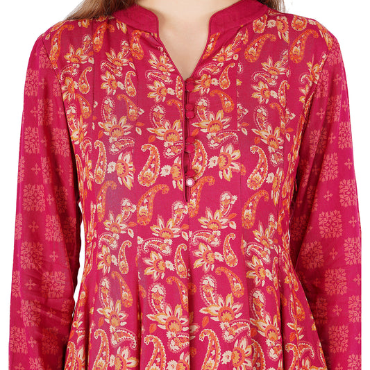 Hand Block Paisley Bagru Print Kurta With Beads Emb At Yoke