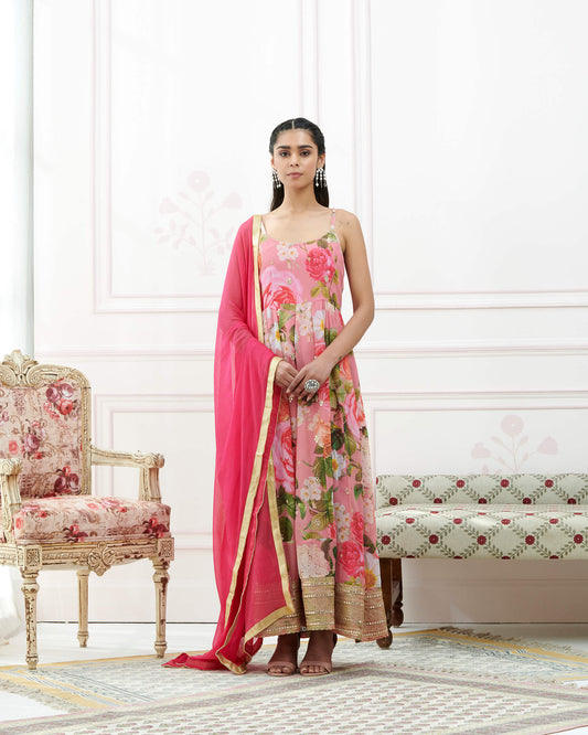 -50% OFFFloral Printed Emb Kurta Dupatta Set