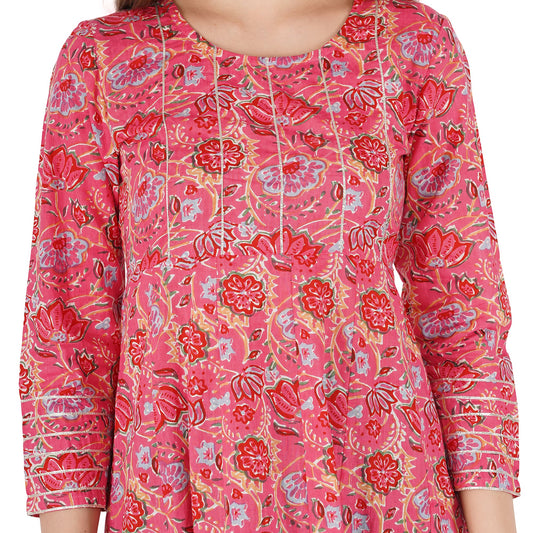 -50% OFFFloral Printed Kurta With Gotta Lace