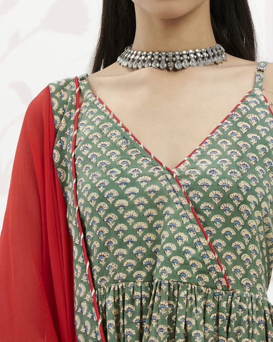 Sea Green Hand Block Cotton Printed Sea Green Anarkali Kurta Set