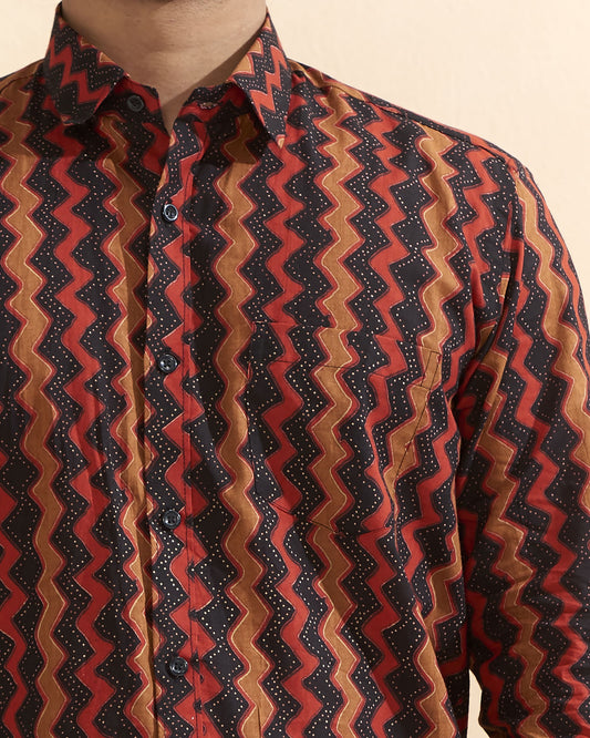 Full Sleeve Geomatrical Line Printed Mens Cotton Shirt (Black)