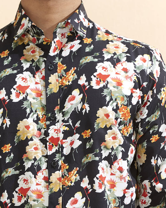 Full Sleeves Black Crepe Casual Printed Men's Shirt