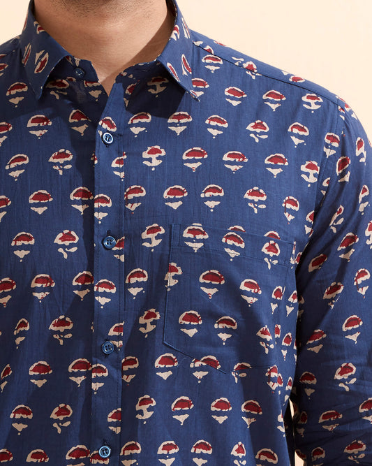 Blue Full Sleeve Cotton Hand Block Printed Men's Shirt