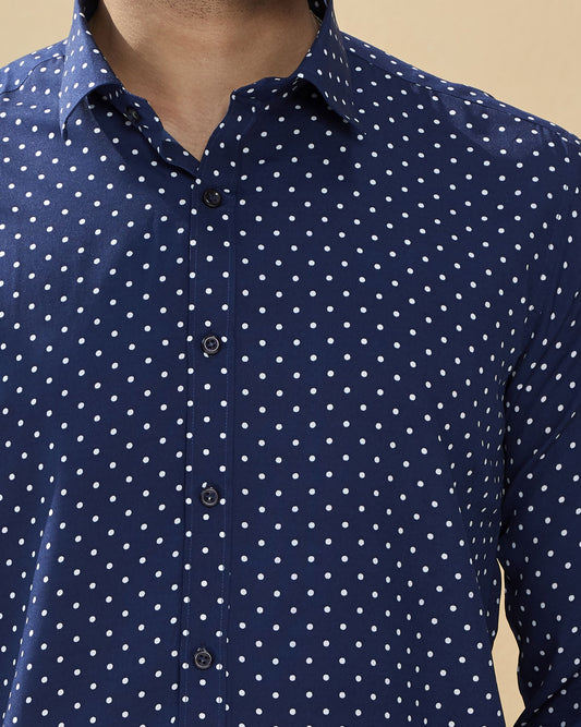 Electric Blue Full Sleeve Crepe Casual Printed Men's Shirt