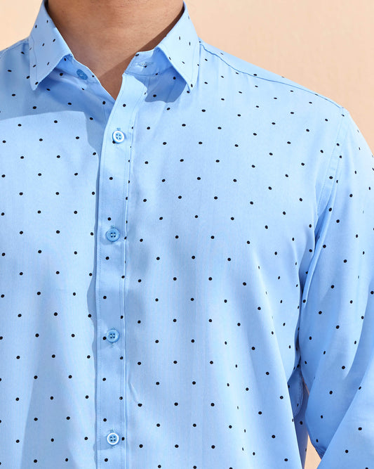 Full Sleeves Blue Crepe Casual Printed Men's Shirt