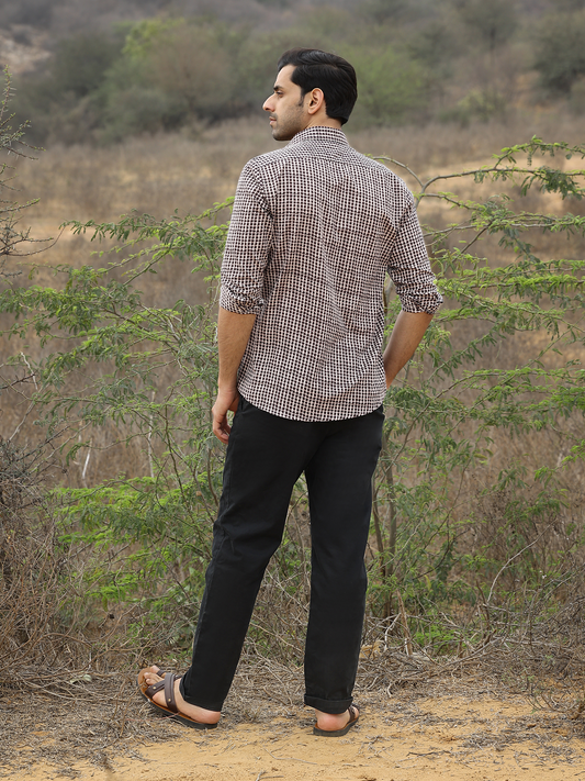 Full Sleeve Checkhered Printed Mens Cotton Shirt (Baige)