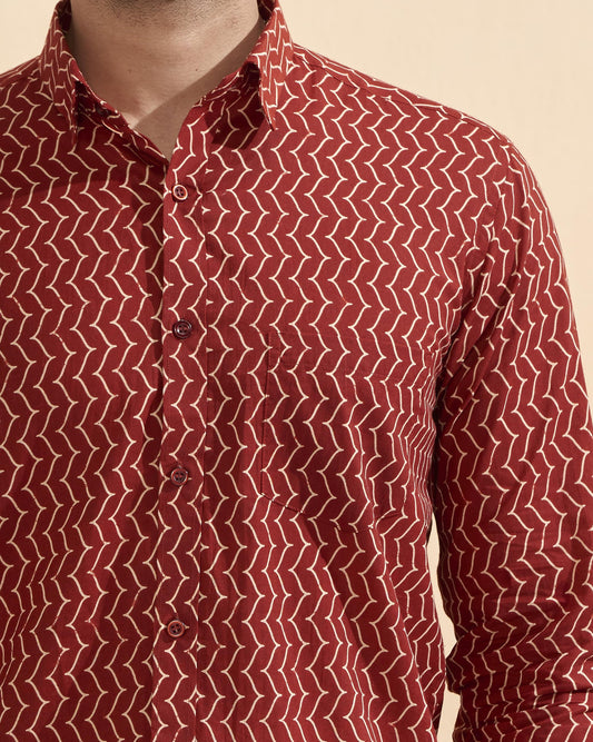 Maroon Full Sleeve Cotton Hand Block Printed Men's Shirt