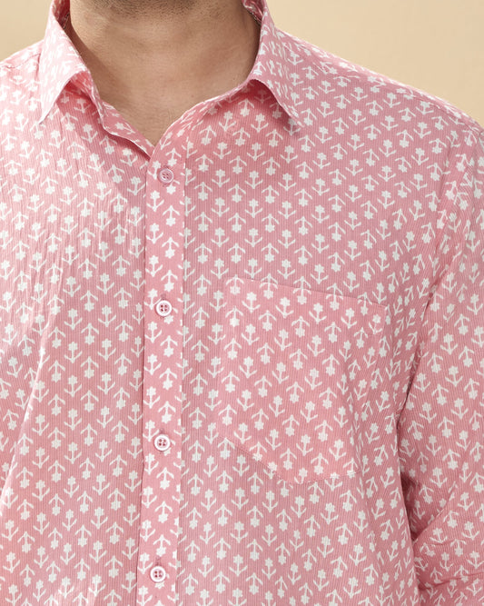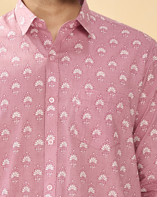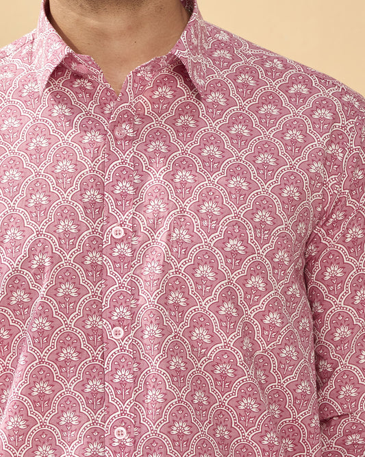 Pink Full Sleeve Cotton Hand Block Printed Men's Shirt