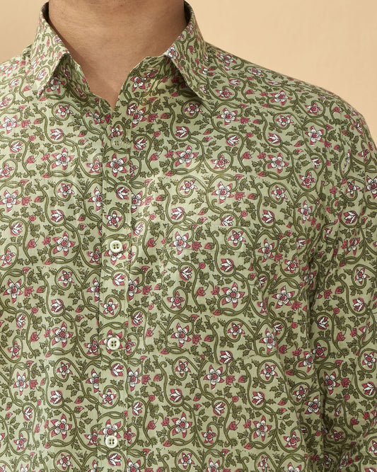 Light Green Full Sleeve Cotton Hand Block Printed Men’s Shirt