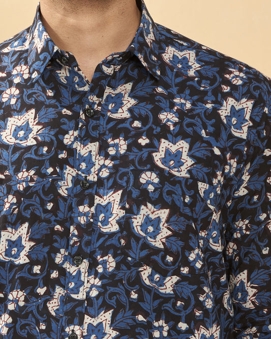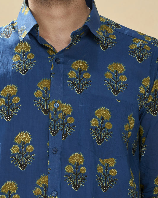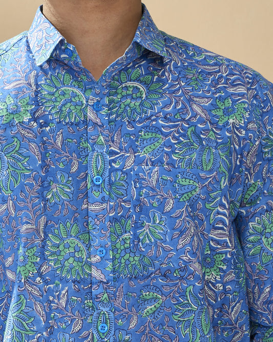 Blue Full Sleeve Cotton Hand Block Printed Men’s Shirt
