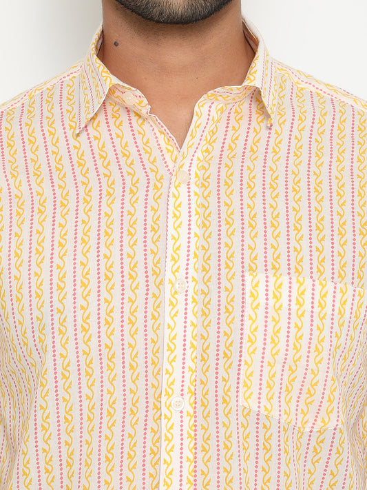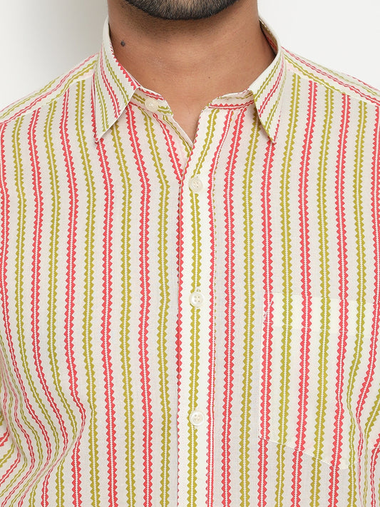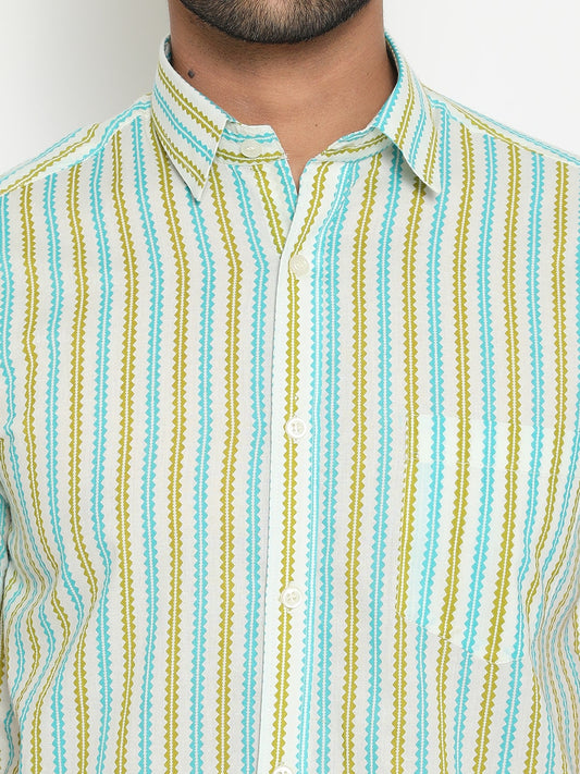Off White Cotton Hand Block Printed Men's Shirt