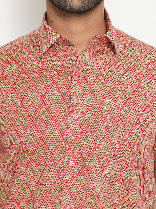 Mix Short Sleeve Cotton Hand Block Printed Menās Shirt