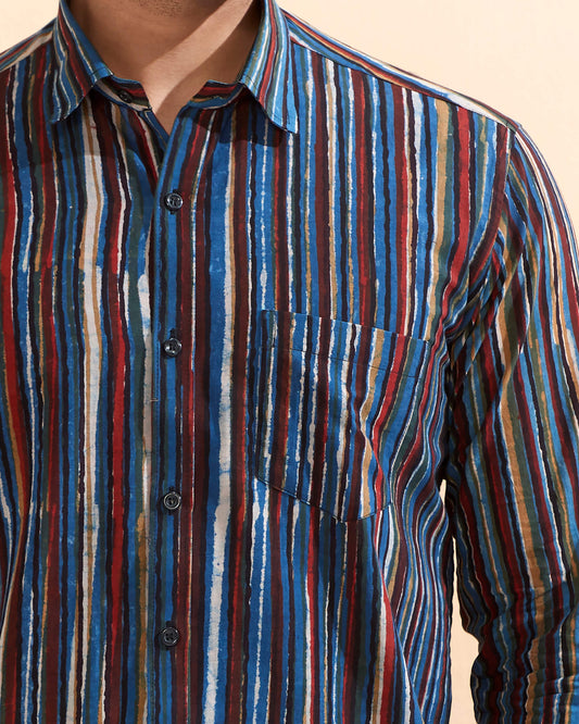 Blue Full Sleeve Cotton Hand Block Printed Men's Shirt