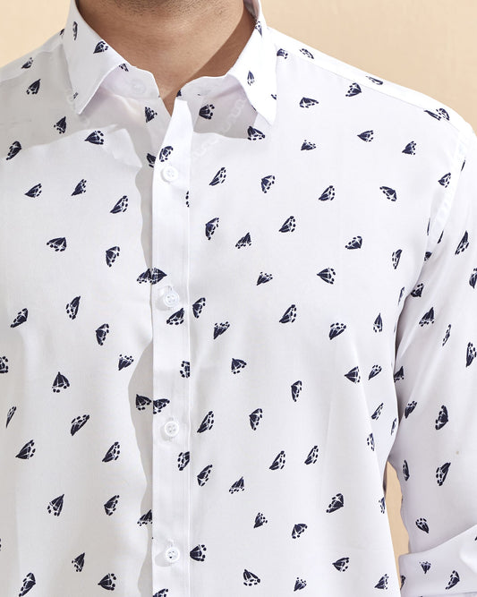 Full Sleeves White Crepe Casual Printed Men's Shirt