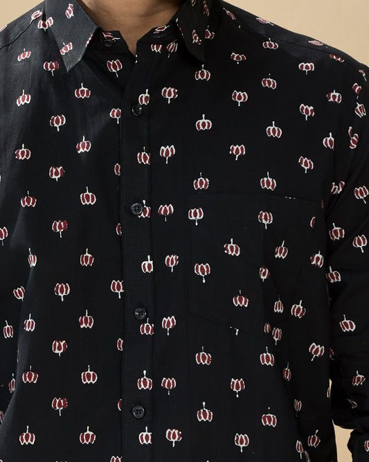 Black Full Sleeve Cotton Hand Block Printed Men’s Shirt