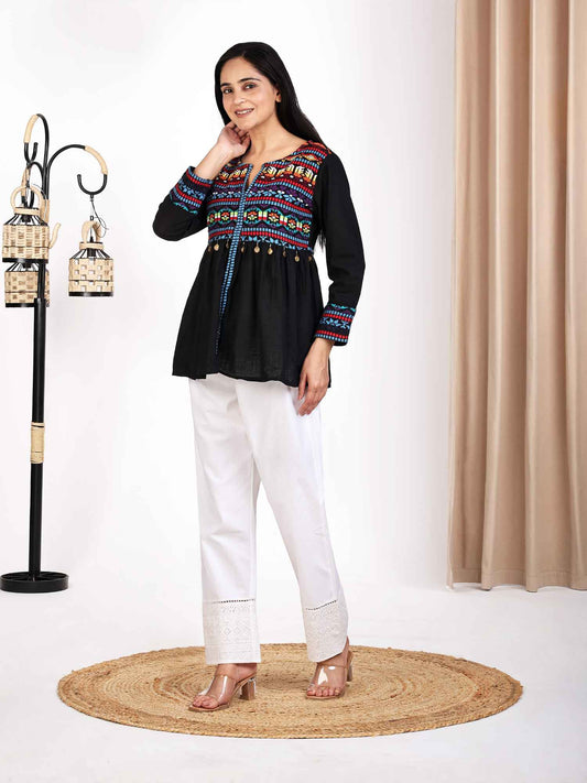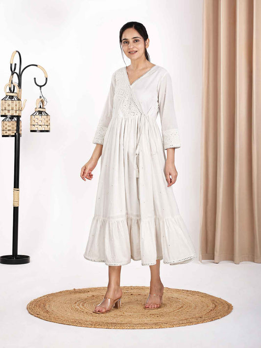 White Mirror Embroidered Tiered Pure Cotton Women Kurta