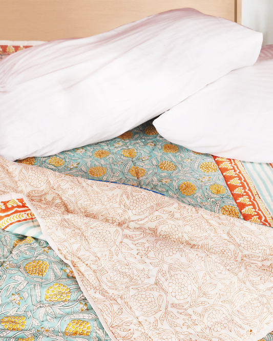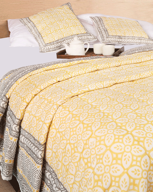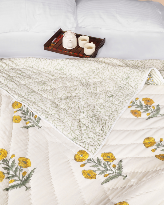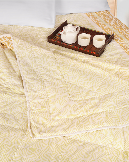 Hand blocked Printed Reversible Single Quilt Set (Set of 2)