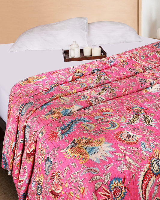 Handblocked Printed Hand Kantha Double Bed Dohar/Bed Cover