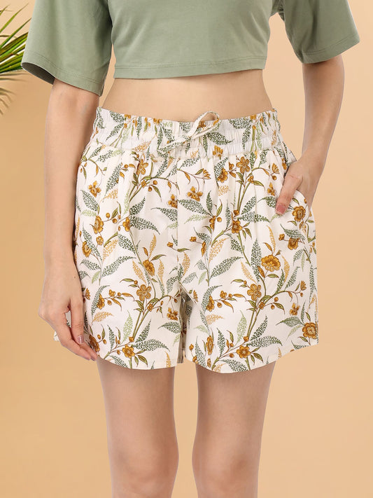 -50% OFFYellow Print Cotton Shorts
