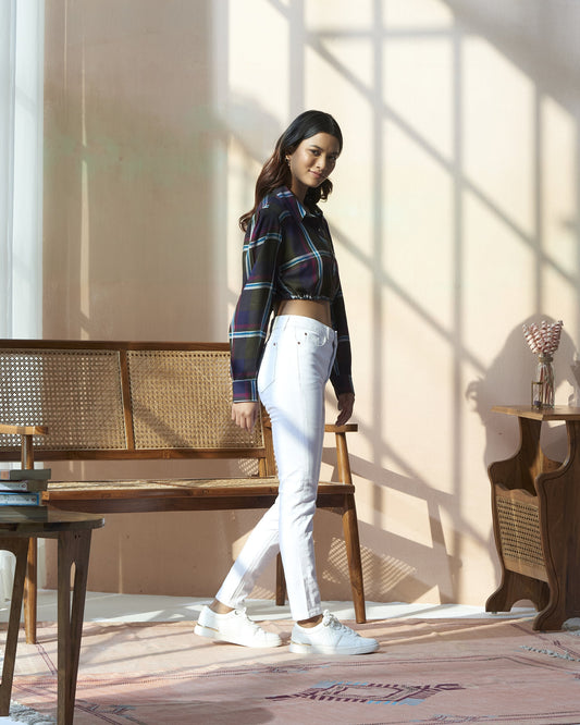 Yarn Dyed Crop Top With Drawstring At Bottom