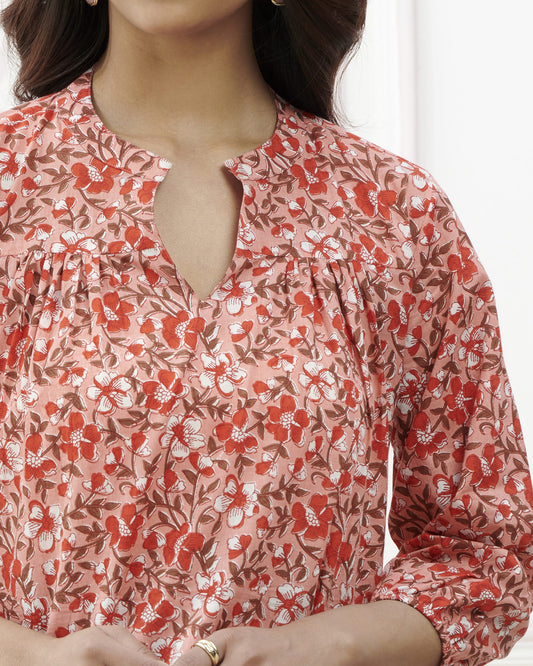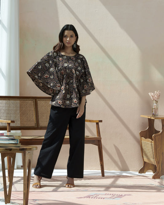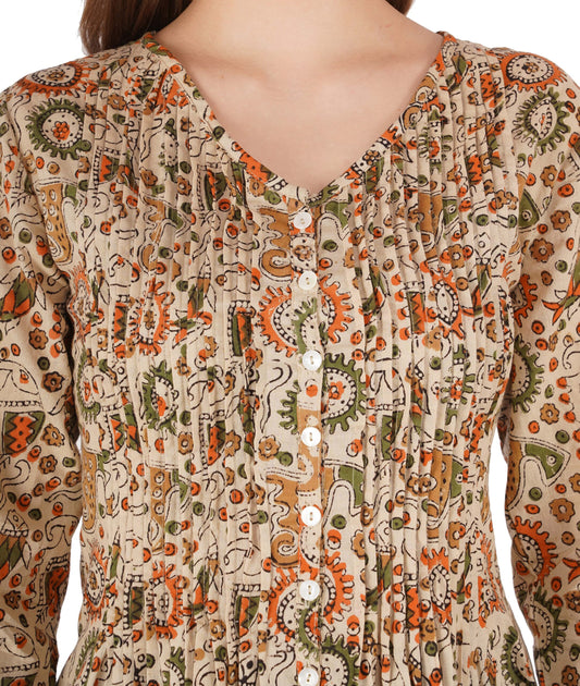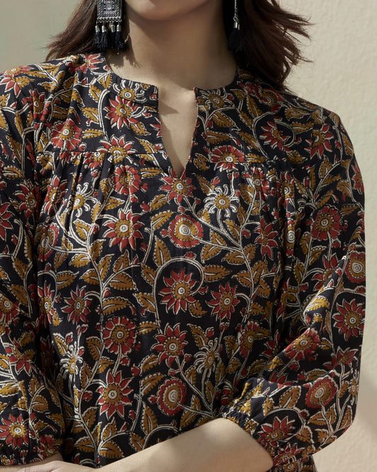 Kalamkari Printed Casual Top With Elasticated Sleeve
