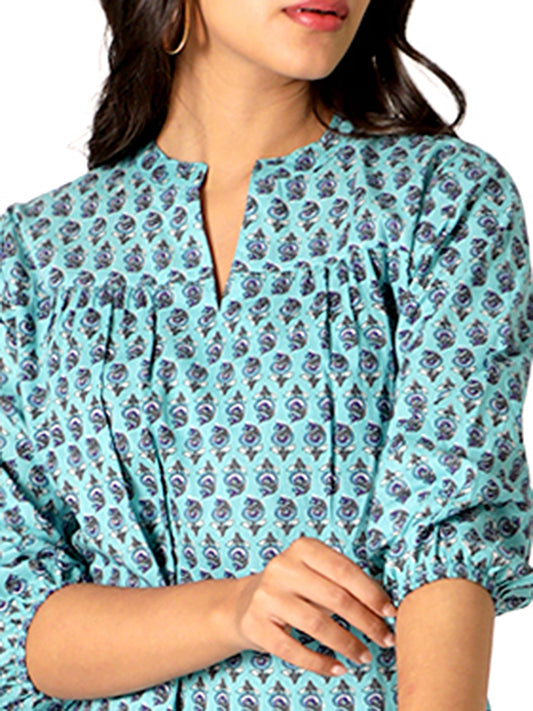 Blue Cotton Hand Block Cotton Printed Top