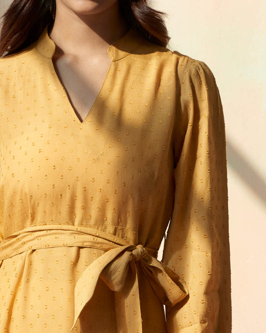 Yellow Kantha Yoke Hand Block Cotton Kurta