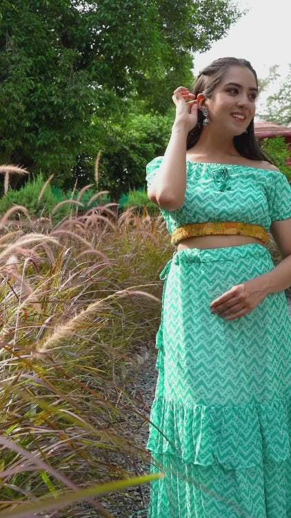 Georagatte Zig Zag Print Skirt Crop Top Set