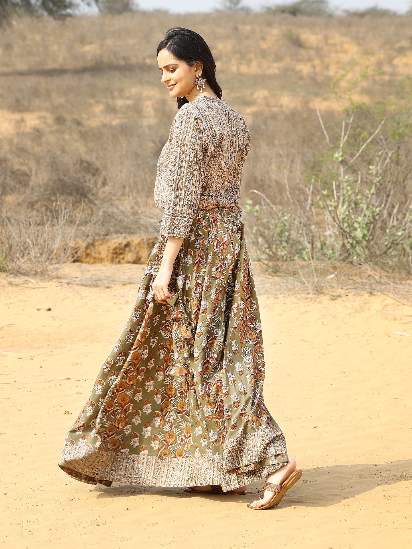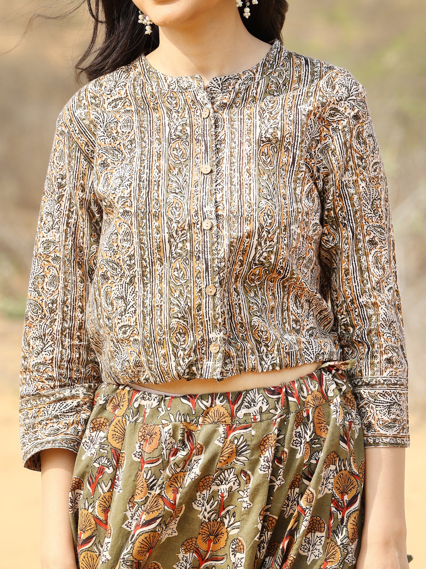 Step into elegance with our green Hand Block Print Cotton Skirt and Top Set. Made from 100% cotton, Featuring a full-length skirt and matching top adorned with intricate patterns, this outfit is perfect for festive occasions and cultural celebrations. Experience the artistry of Indian craftsmanship and make a timeless style statement.