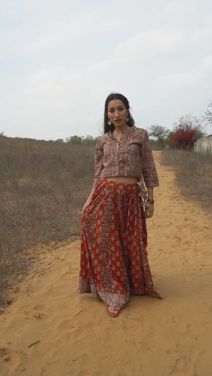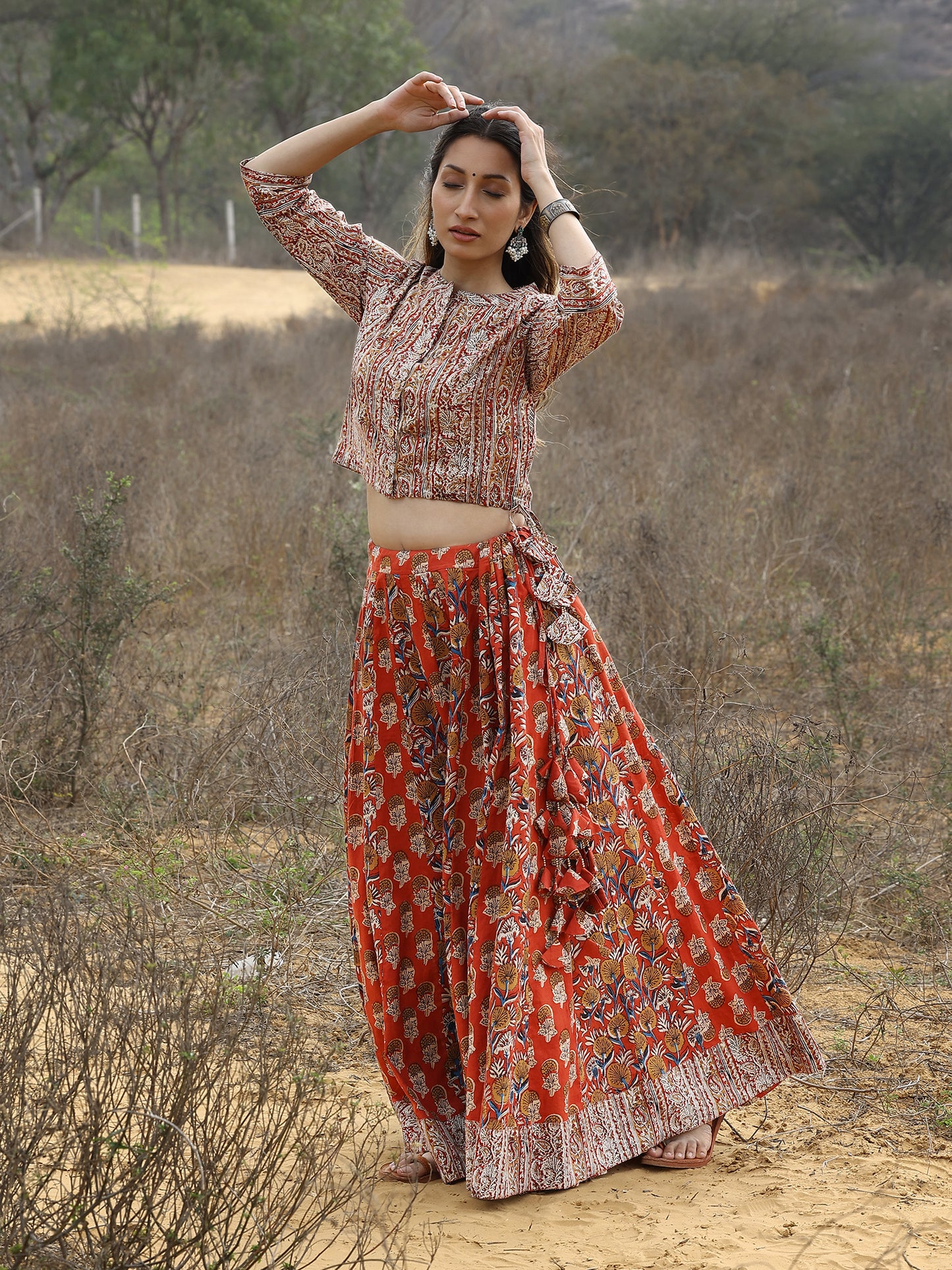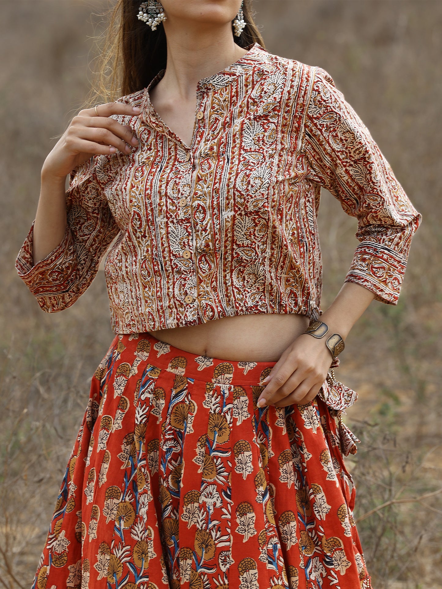 Step into elegance with our Red Hand Block Print Cotton Skirt and Top Set. Made from 100% cotton, Featuring a full-length skirt and matching top adorned with intricate patterns, this outfit is perfect for festive occasions and cultural celebrations. Experience the artistry of Indian craftsmanship and make a timeless style statement.